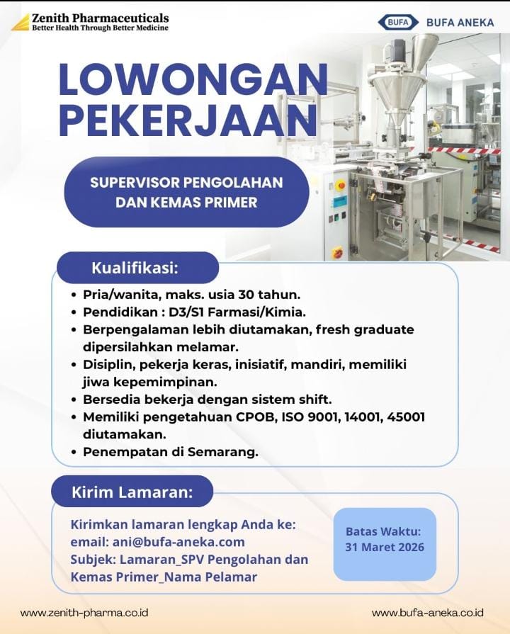 - Pendidikan: D3/S1 Farmasi/Kimia.