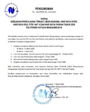 Sesuai dengan Edaran nomor : 082/PMW/SL-A/III/2026 mengenai Surat Edaran Libur Hari Raya Idul Fitri dan Nyepi Tahun 2026 memberitahukan sebagai berikut